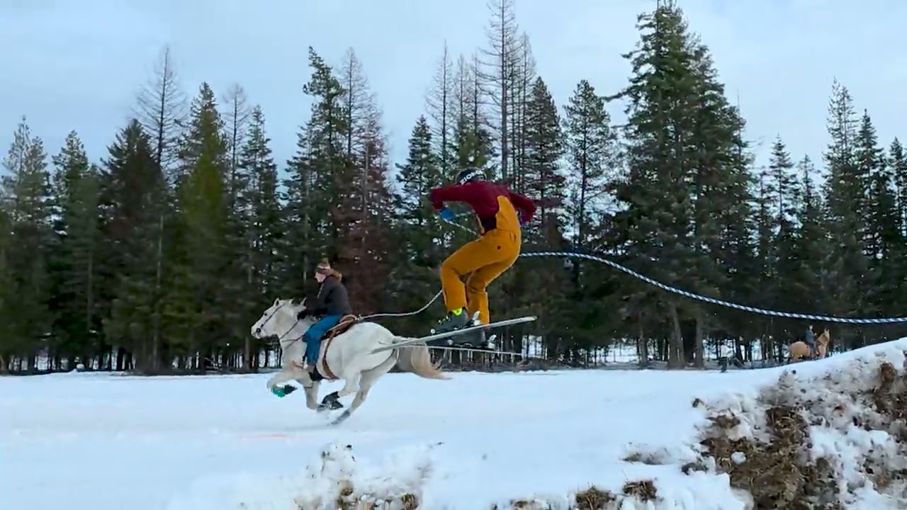Action Shots of the 02-02-2025 skijoring practice taken place by Echo Lake, MT.